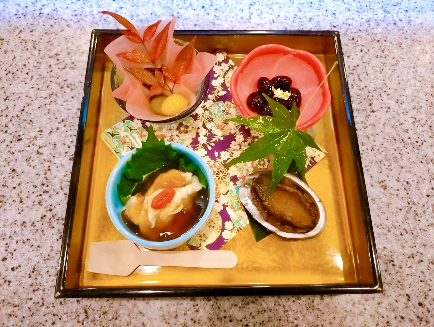 揚げ銀杏、本鮪つみれ団子 丹波黒豆